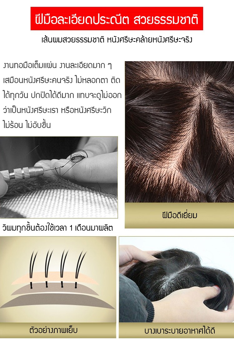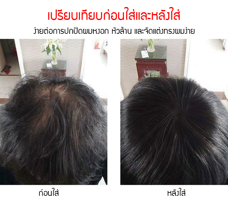 ผมหนาขึ้น ไม่ให้เห็นหนังศีรษะ หลังสวมดูอ่อนกว่าวัย 10 ปี ผมแท้ทั้งหมด เป็นธรรมชาติ สวมใส่สบาย แข็งแรงใช้ได้นาน มี 2 สีให้เลือก